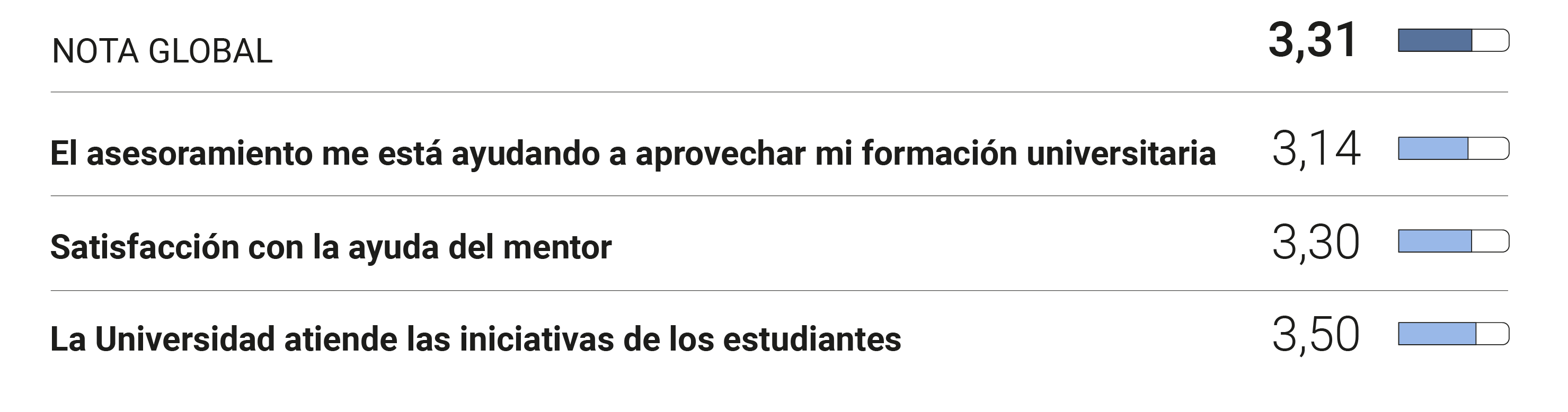 Gracias a vuestras respuestas a la encuesta anual Satisquestion, podemos conocer mejor cómo veis la Universidad y las posibles mejoras y futuras líneas de trabajo.