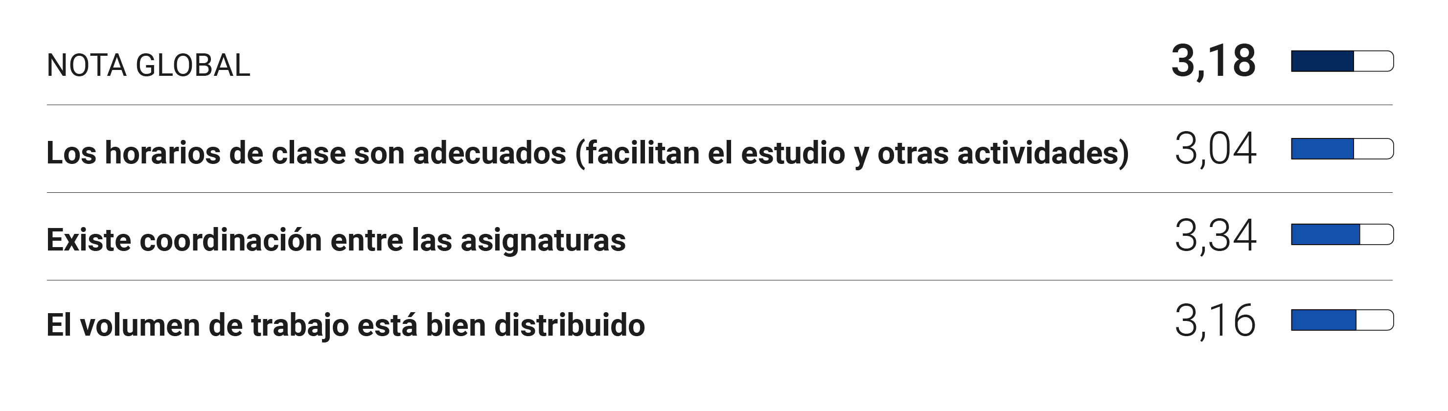 A continuación os desglosamos algunos de los principales datos de este curso 2023-24. Habéis respondido 2.710 estudiantes de grado, lo que representa el 59,67% de los encuestados. Supone la participación más alta desde 2018.